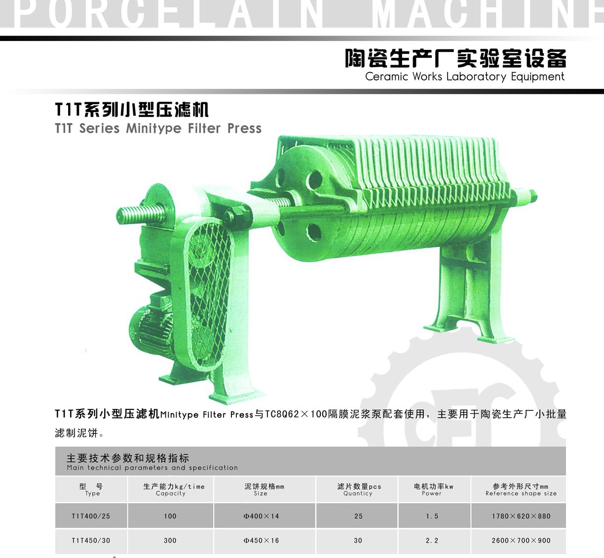 T1T系列小型壓濾機與TC8Q62×100隔膜泥漿泵配套使用,主要用于陶瓷生產廠小批量濾制泥餅。