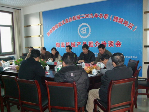 2009年產(chǎn)品推介會現(xiàn)場,公司董事長陳復民先生、總經(jīng)理陳佳質(zhì)先生邀請中國硅酸鹽學會陶瓷機械裝備委員會主任張柏清教授、醴陵市科技委員會主任潘英女士、中共醴陵市陶瓷產(chǎn)業(yè)園委員會江署明副書記,參加會議。