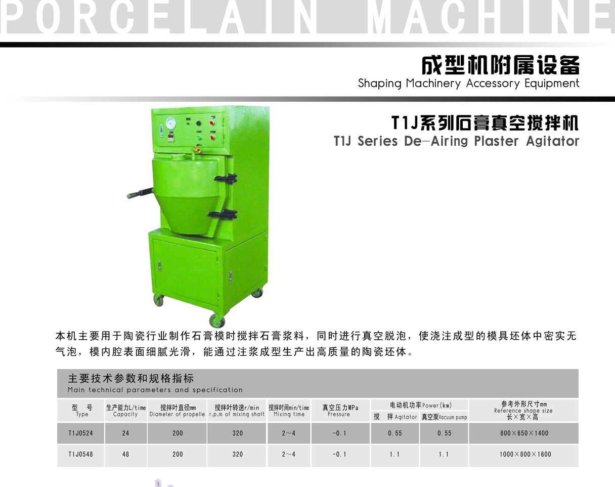 T1J系列石膏真空攪拌機主要用于陶瓷行業(yè)制作石膏模時攪拌石膏漿料,同時進行真空脫泡,使?jié)沧⒊尚偷哪>吲黧w中密實無氣泡,模內腔表面細膩光滑,能通過注漿成型生產出高質量的陶瓷坯體。
